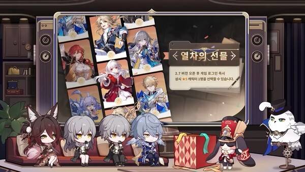 2.7버전 오픈 후 게임 로그인 즉시 상시 5성 캐릭터 1명을 선택해 받을 수 있다.