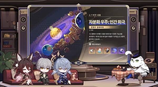 호요버스가 22일 붕괴 스타레일 2.7버전 '여덟째 날에 오르는 여정' 프리뷰 스페셜 프로그램을 진행했다. 빼미와 함께 선데이와 개척자, 망귀인이 참여해 2.7버전 업데이트를 소개했다.