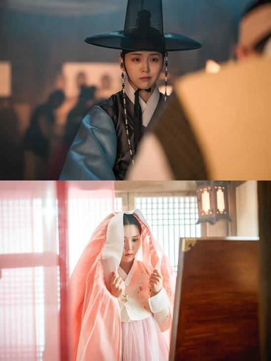 꽃분홍 쓰개치마를 입고 있는 여인의 모습에서는 남장 때와는 180도 다른 청초하고 고혹적인 분위기로 매력을 뽐내면서 남장 여자와 여인을 오가며 보여줄 다채로운 모습에 대한 궁금증이 더해지고 있다.