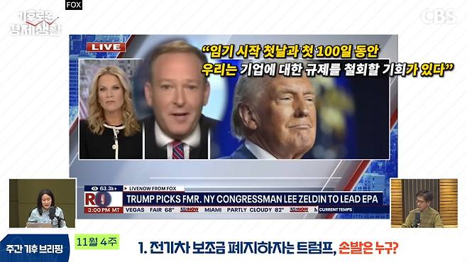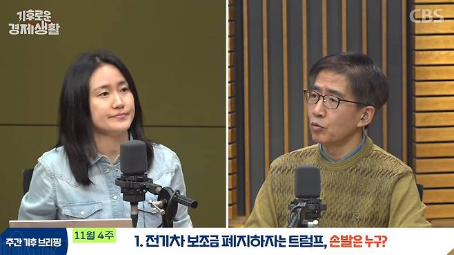 ◇ 최서윤> 네. 안녕하세요. 이번 주에도 두 가지 소식 준비했는데요. 먼저 첫 번째 소식입니다. 트럼프의 전기차 보조금 폐지 주장, 정책 실현해 줄 손발은 누구?