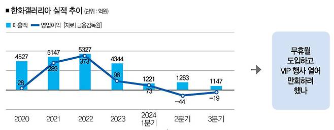 ■ 적자의 늪 = 갤러리아는 1990년 국내 백화점 시장에 '명품관'이란 개념을 처음 도입했다. 샤넬·에르메스·루이비통 등 주요 명품 브랜드가 입점한 '갤러리아 명품관(서울 압구정)'의 경우 2021년 매출액 1조원을 돌파하는 등 백화점 매출 순위 10위권(이하 순위는 업계 추정치)에 이름을 올려왔다. [※참고: 한화갤러리아는 서울 압구정(명품관), 수원(광교점), 천안(센터시티점), 진주(진주점), 대전(타임월드점) 등 백화점 5곳을 운영하고 있다.]