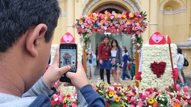 병원 성당(Iglesia Santo Hermano Pedro de San José Betancur) 앞에는 노란색 성당을 배경으로 한 꽃 아치에서 사진을 찍고자 하는 사람들로 긴 줄이 만들어졌다. 지난밤, 밤을 새워 아치를 만들던 병원 직원들의 노고가 긴 줄로 보상이 될 만했다.