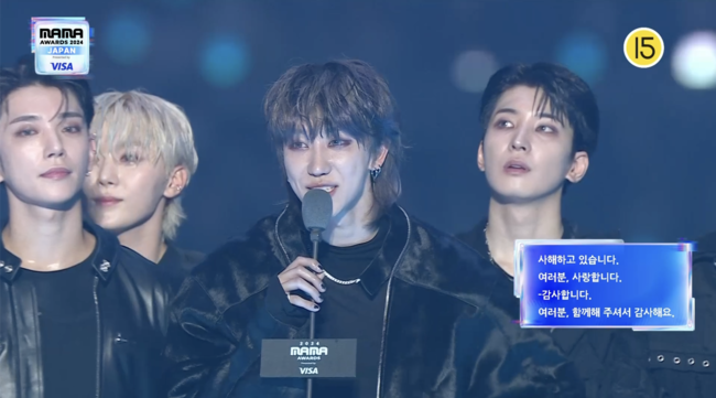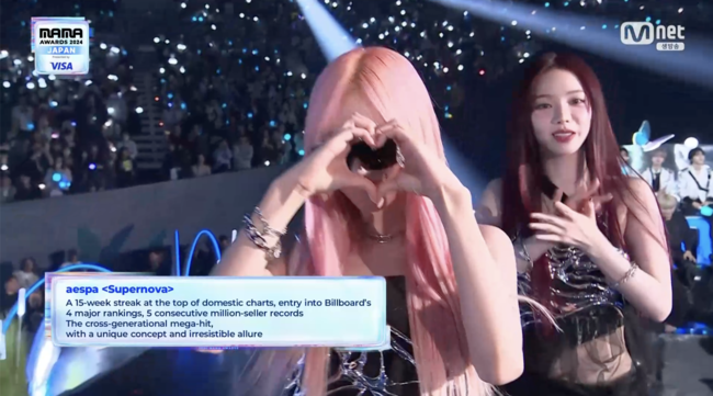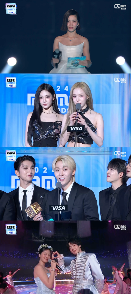 23일 오후 일본 교세라 돔 오사카에서 진행된 ‘2024 MAMA AWARDS JAPAN(마마 어워즈)’ 시상식에서는 세븐틴이 ‘올해의 앨범상’, ‘올해의 가수상’을 수상했고, 에스파는 ‘올해의 노래상’을 포함해 총 6관왕을 누렸다.