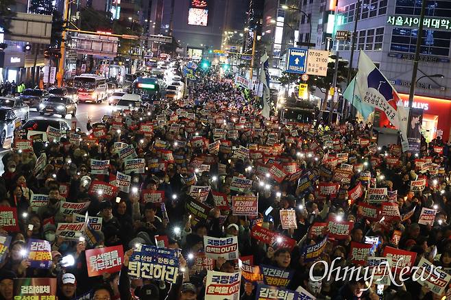 광화문 가득 메운 10만 촛불 "윤석열을 거부한다"