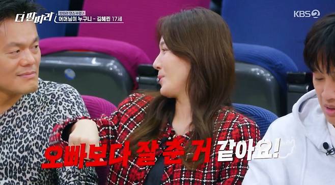 김혜린은 박진영 '어머님이 누구니'에 맞춰 감각적인 안무를 선보였다. 무대가 끝난 뒤 레드벨벳 웬디는 "진짜 어머님이 누구냐"며 김혜린의 끼에 감탄했다. 김하늘은 "이런 말해도 될 지 모르겠다"며 잠시 박진영 눈치를 보다 "오빠(박진영)보다 더 잘 춘 것 같다"고 극찬했다.