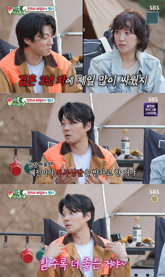 이천희는 "결혼 3년 만에 혜진이가 상담을 받자고 했다"면서 "처음 상담 할 땐 불편했는데, 하면 할 수록 더 괜찮았다"고 했다.