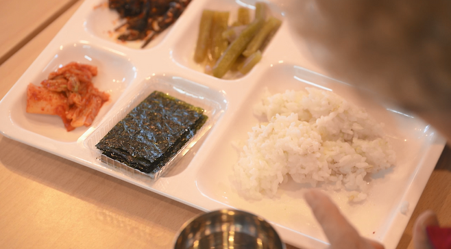 "따신밥 먹고 따신 국 먹고. 집에서 끓이면 맛없는데 여기서 먹으면 맛있어요. 많이 하니까."