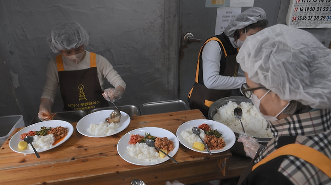 서울의 한 무료급식소. 노인들에게 점심밥을 대접한 지 올해로 32년이 됐습니다.