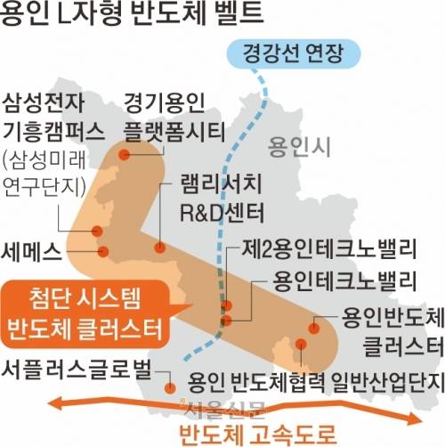 용인에서는 현재 SK하이닉스의 원삼면 반도체클러스터 일반산단과 삼성전자가 입주할 이동·남사읍 첨단시스템반도체 국가산단 등 세계 규모의 반도체 산업단지 2곳이 조성되고 있다.