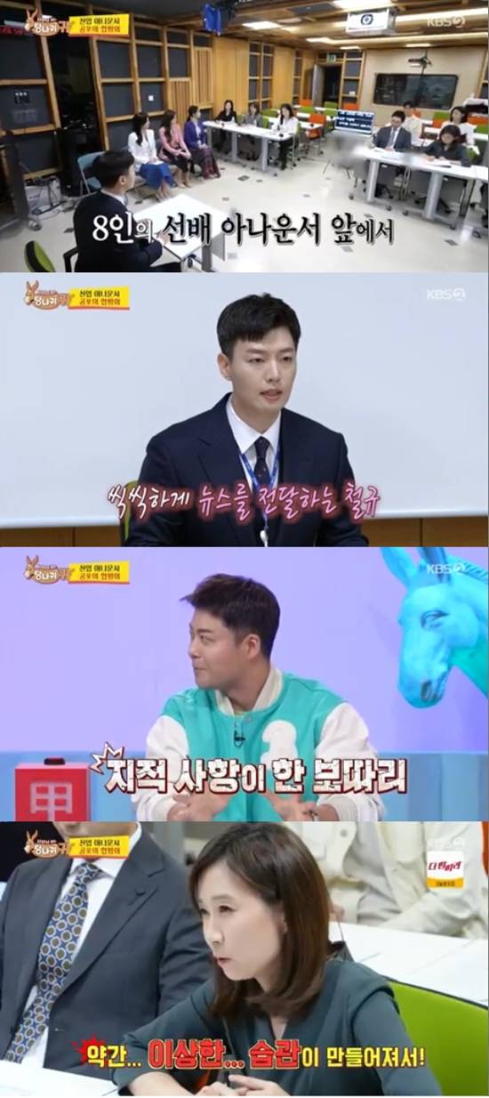 첫 주자로 박철규가 나서 앵커 멘트를 시작했다. 전현무는 박철규의 뉴스 진행을 보더니 "지적사항이 한 보따리일 거다. 뭐라고 하실지 보인다"고 안타까워했다.