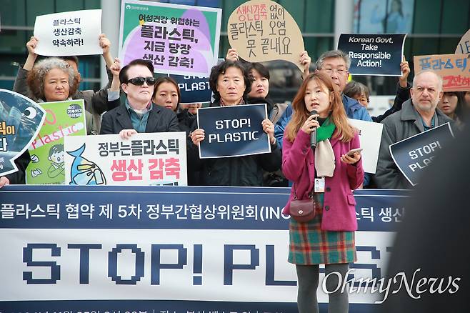 지난 22일 BFFP(Break Free From Plastic)가 발표한 10개국 시민 대상 설문조사를 설명한 유새미 플뿌리연대 활동가는 "응답자의 84%가 생산 감축을 원하며 그 책임은 정부와 기업에 있다고 답했다"라면서 이번 회의의 임무를 내세웠다. 노현석 부산환경운동연합 협동사무처장은 "퇴출 선포로 내일 당장 플라스틱이 사라지는 건 아니지만, 우리가 어느 길로 갈지 선택할 수 있다"며 부여된 책임을 강조했다.