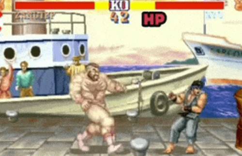일단 앉은 약손이나 서서 약손만 한 번 들어가도 그 판은 바로 끝나는 거고요, 더블 니 프레스 한 번만 성공시켜도 그 판이 끝납니다. 나아가 2P 한정이지만 무한 공격도 있어서 한 번만 공격을 막아도 끝나는 무적 기술도 있죠. (버그)