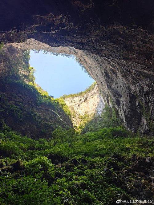 중국 남부 광시성 거대 자연 싱크홀, 관광명소 급부상