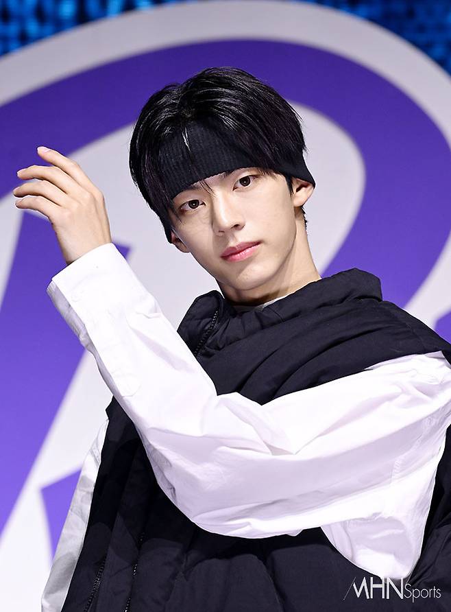 그룹 투어스(TWS) 도훈이 25일 오후 서울 용산구 블루스퀘어 마스터카드홀에서 열린 첫 번째 싱글 '라스트 벨(Last Bell)' 쇼케이스에서 포토타임을 가지고 있다.