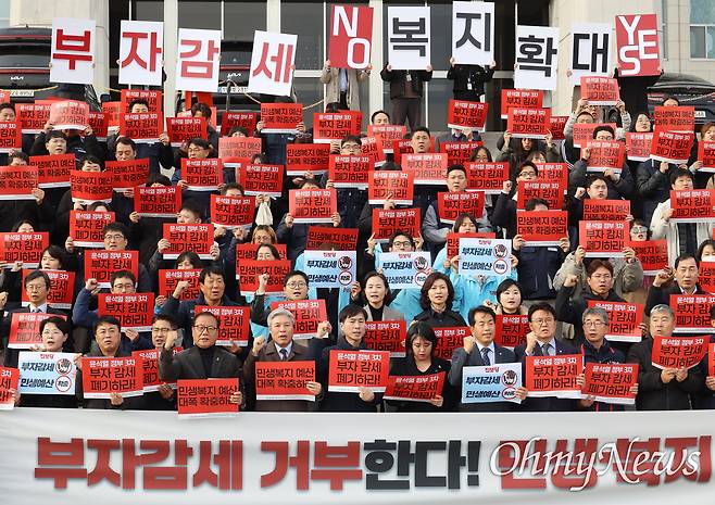 이어 이들은 "윤 정부의 부자 감세를 비판하고 저지할 책임은 민의의 대의기관인 국회에 있다"며 "그런데 여당은 정부안의 맹목적 지지와 방어에만 몰두하고 있고, 제1야당 민주당은 금융투자소득세 폐지 등 정부여당의 부자감세에 동조, 편승하더니 이제는 상속세, 종합부동산세, 배당소득세까지 깎아주는 게 민생이라고 말하고 있다. 부끄럽지 않은가"라고 비판했다.