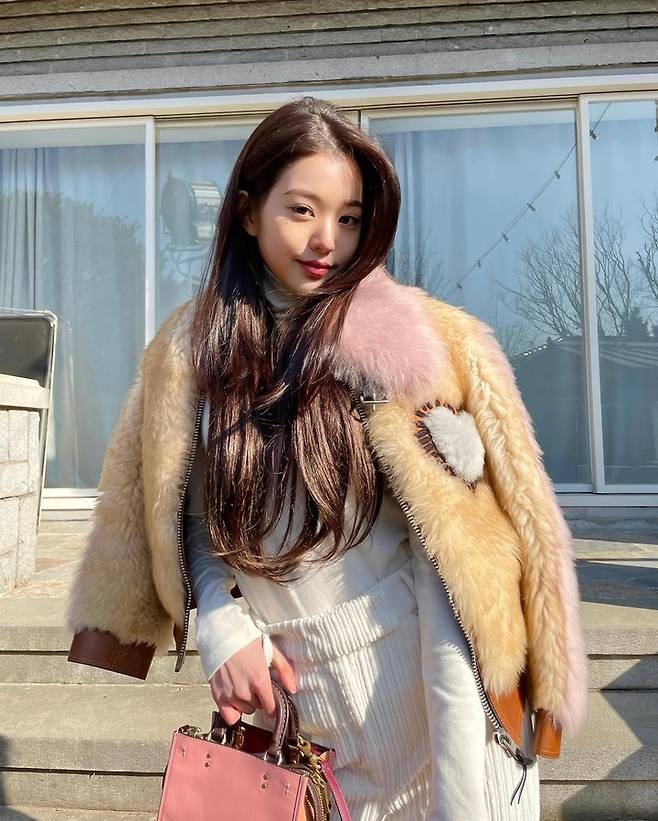 이어서 장원영의 겨울 코디를 살펴보자. 그녀는 럭셔리 브랜드를 적극적으로 활용하여 고급스러움을 더하는 패션을 즐긴다. 이번 스타일링에서도 장원영은 '코치'와 '키스 헤링'의 협업 제품인 퍼 자켓을 아우터로 선택했고, 가방 역시 '코치' 제품을 매치해 고급스러움을 더했다. 상하의를 흰색으로 통일하여 아우터와 가방이 돋보이도록 했으며, 퍼 자켓의 핑크색과 독특한 하트 패치가 룩에 재미를 더했다. 가방도 같은 핑크색으로 매치하여 시선을 끌었다.