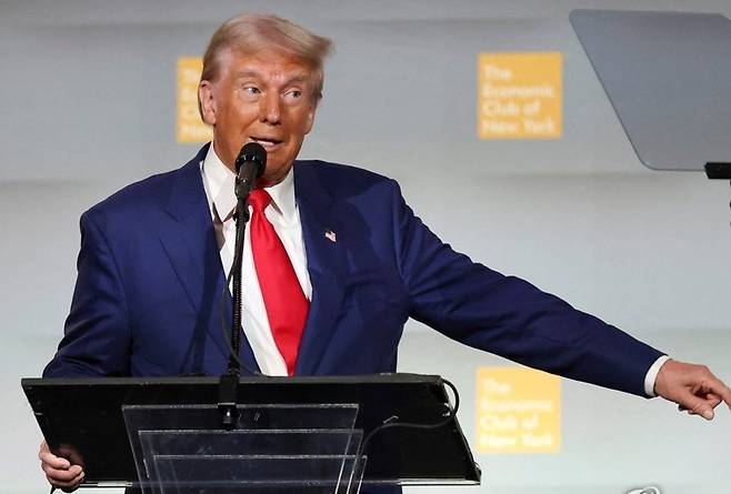 [5일 뉴욕 경제클럽에서 연설하는 도널드 트럼프 전 미국 대통령 (로이터=연합뉴스)]