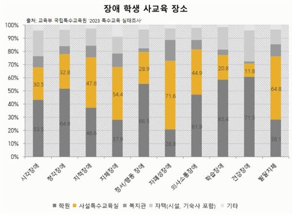 | ▲ 장애 학생 사교육 장소 국립특수교육원에서 공개한 2023 특수교육 실태조사 재구성 |