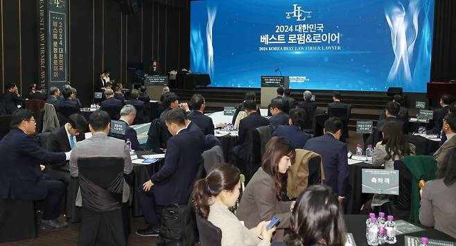 26일 오전 서울 중림동 한국경제신문 다산홀에서 열린 '2024 대한민국 베스트 로펌&로이어' 시상식에서 '명예의 전당'에 오른 변호사들은 입 모아 자신이 속한 법무법인(로펌)에 공을 돌리며 '원팀' 정신을 강조했다.