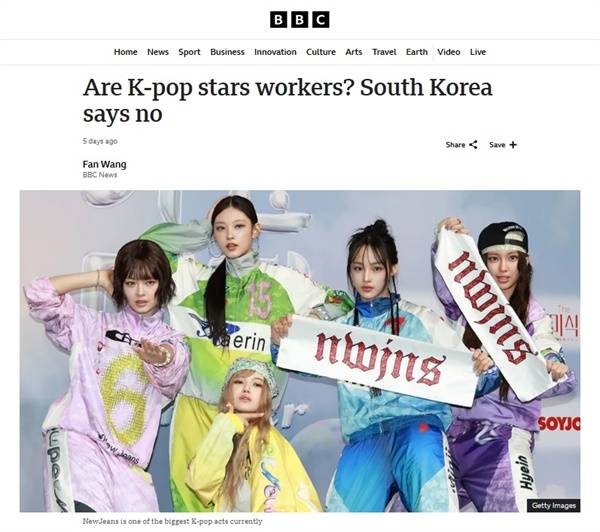 | ▲ 뉴진스 멤버 하니를 근로기준법상 근로자로 보기 어렵다는 서울지방고용노동청의 판단을 보도하는 영국 BBC |