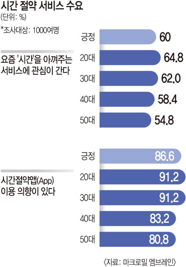 업계 관계자는 “‘시간 관리’에 대한 니즈가 라이프스타일 전반에 자리잡은 만큼 시간에 따라 가격을 다르게 측정하거나 원격 예약을 통해 대기를 최소화하는 시스템이 늘고 있다”며 “앞으로 소비자의 시간을 효율적으로 사용할 수 있도록 하는 제품이나 서비스가 큰 경쟁력을 가질 것”이라고 말했다.