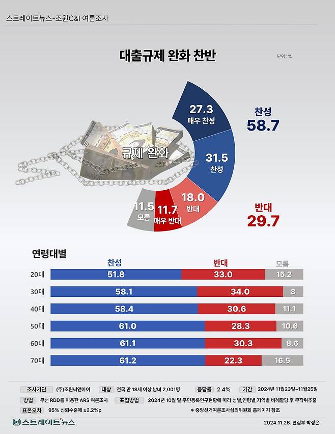 대출규제 완화 조사…찬성 58.7% 반대 29.7%
