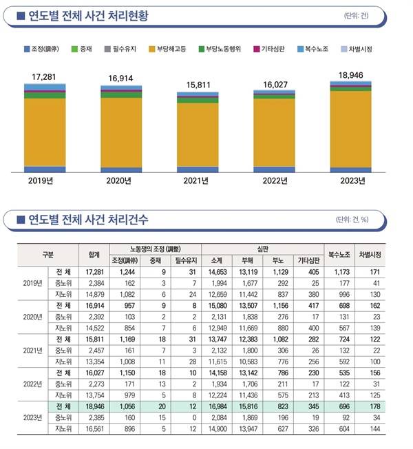 | ▲ 2023년 노동위원회 통계연보. 중앙노동위원회 |