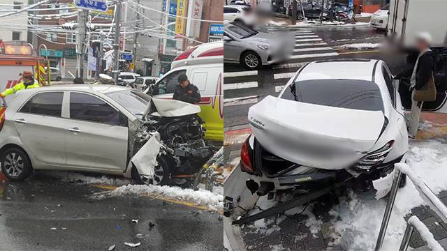 눈길 서울 은평구 4중 추돌사고…소방 신고 2백여 건