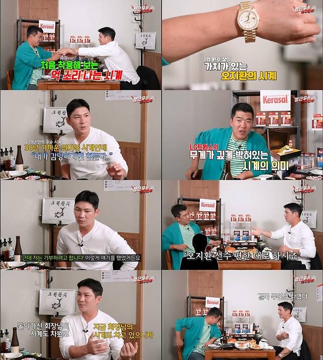 오지환은 지난 25일 공개된 유튜브 채널 '정근우의 야구인생'에 출연해 지난해 MVP 부상으로 받은 롤렉스 시계를 공개했다.