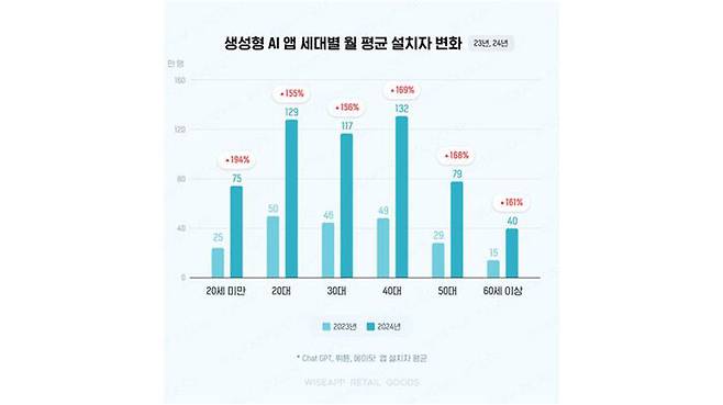 올해 생성형 인공지능(AI) 애플리케이션을 설치한 국내 이용자가 전 연령대에서 1년 전에 비해 150% 이상 급증한 것으로 나타났습니다.