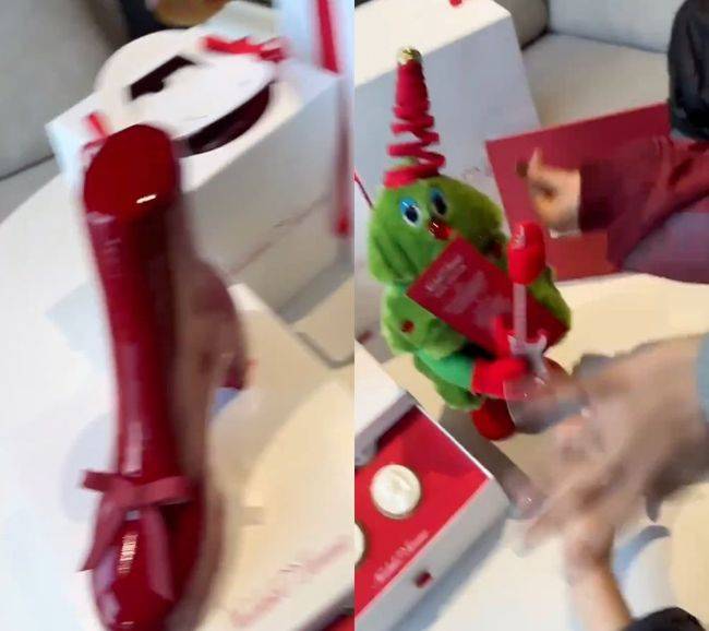 공개된 영상 속에는 제니가 직접 뉴진스에게 보낸 케이크 모습이 담겼다. 해당 케이크는 홀리데이 시즌을 맞이해 제니가 협업해 선보인 시리즈로, 구두 모양의 케이크, 리본 디테일의 케이크’, 제니의 초상을 담은 쿠키 등으로 구성되어 있다.