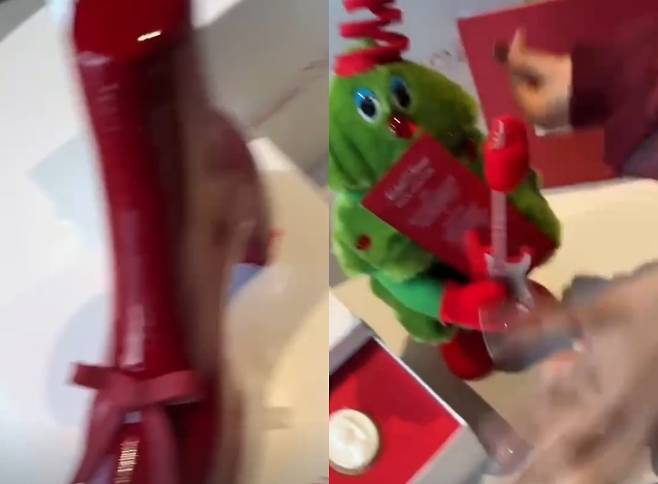 공개된 영상에는 제니가 뉴진스에게 보낸 구두 모양 케이크 모습이 담겼다. 해당 케이크는 제니가 홀리데이 시즌을 맞아 협업한 시리즈다.