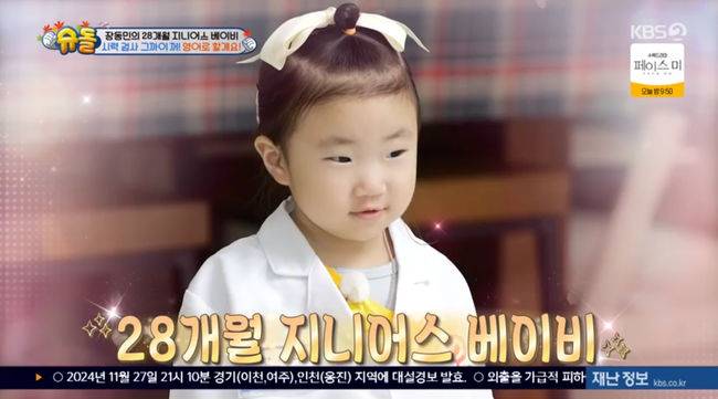 장동민 딸 지우, 천재 DNA 물려 받았다! 28개월에 영어로 시력검사 "꿈은 의사" ('슈돌') [순간포착]