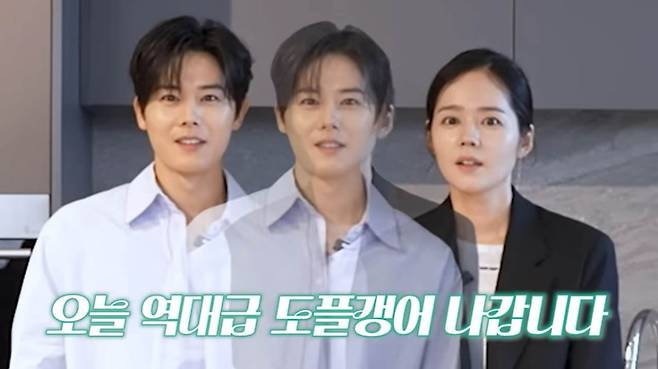 한가인은 "많은 분들이 기다리던 만남이다"며 "주변에서 얘기도 많이 들었고, 영상마다 댓글도 많이 달아주셨다. 사실 두려웠다. 도플갱어 만나면 위험할 수 있다고 해서. 우리가 얼마나 닮았는지, 기다리시던 투샷을 찍기 위해서 만나러 왔다"며 김동준을 소개했다.