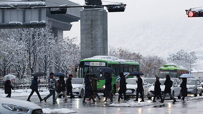 ▲ 이틀 연속 폭설이 내린 28일 오전 서울 광화문 일대에서 시민들이 출근하고 있다.