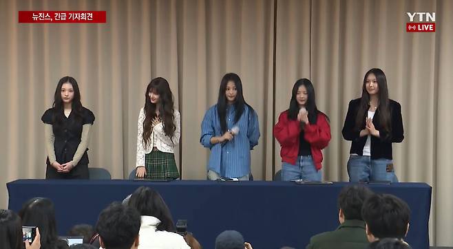 먼저 하니는 "갑작스럽게 만든 자리에 와주셔서 감사하다"고 인사한 뒤 "9월에 했던 유튜브 라이브와 2주 전에 시정 요구 내용증명은 저희 다섯 명이 모두 결정하고 진행한 내용이라고 확실히 하고 싶다"고 운을 뗐다.