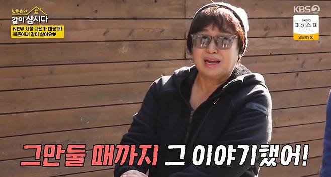 혜은이는 "그래서 TV에 고모(박원숙) 나오면 그 소리를 (많이 했다). 처음 만났을 때부터 그만둘 때까지 그 얘기 했다"고 말했고, 박원숙은 "한 번 초대할까"라고 묻자 다른 소리로 화제를 돌리며 칼차단을 하는 모습을 보였다.