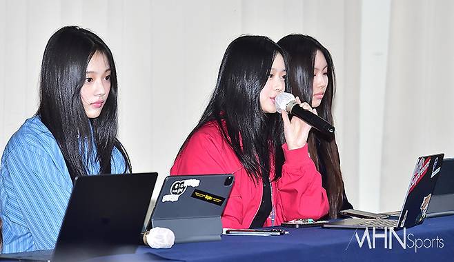 이날 뉴진스가 기자회견에 참석하고 있다.