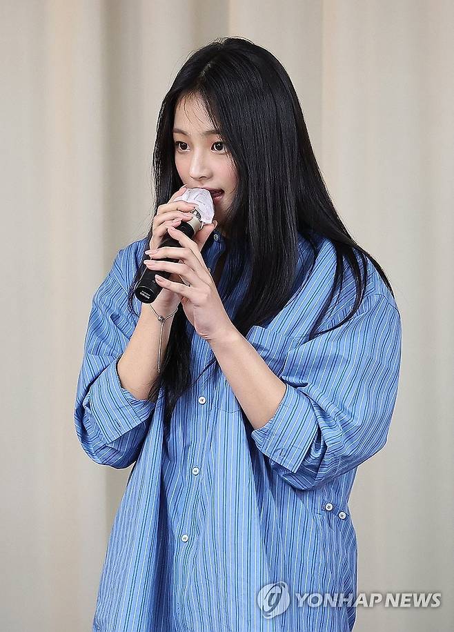 (서울=연합뉴스) 김성민 기자 = 걸그룹 뉴진스 멤버 민지가 28일 오후 서울 강남구 스페이스쉐어 삼성역센터에서 열린 전속계약 해지 관련 기자회견에 참석해 발언하고 있다. 2024.11.28