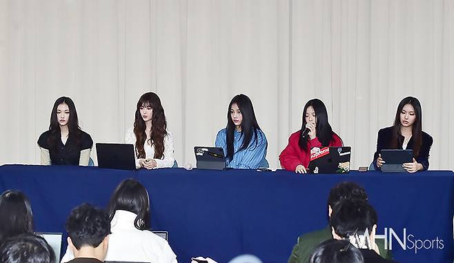 지난 28일 오후 서울 강남구 스페이스쉐어 삼성역센터 갤럭시홀에서 뉴진스(민지, 하니, 다니엘, 해린, 혜인) 전속계약 해지 관련 긴급 기자회견이 열렸다.