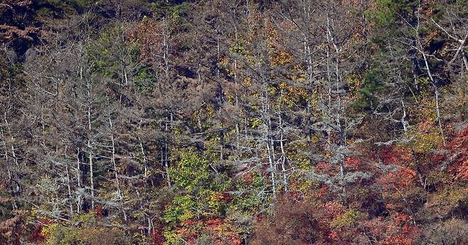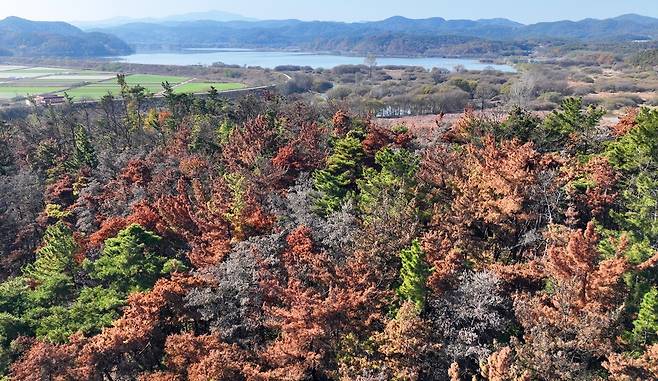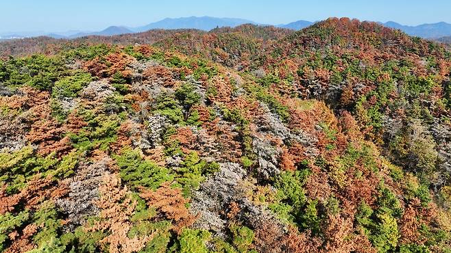 | ▲ 재선충 방제 최우수 상을 받았지만, 오늘 창녕군의 숲은 재선충으로 고사 중이다. |