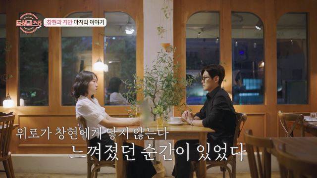 마지막으로 '케이블카 최종 선택'을 통해 '현커'가 됐지만, 후일담 촬영 취소 소식을 전한 창현과 지안의 이야기가 펼쳐졌다. 2주 만에 만난 두 사람은 어색한 기류를 풍겼고, 잠시 후 창현이 먼저 입을 열었다. 창현은 "우리는 출발선 상부터 어긋난 전제를 갖고 있었다"며 "난 서로의 아이들에게 '좋은 어른'의 역할만 바랐는데, 지안이는 '아이의 아빠가 필요하다'는 입장이었던 것 같다"고 말했다.