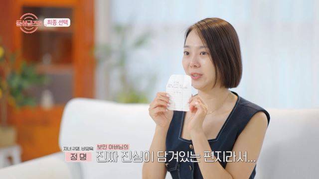 마지막으로 보민-정명은 장거리의 장벽에도 불구하고 "만남을 이어 가겠다"고 선언해 열띤 박수를 받았다. 최종 선택을 마친 뒤 정명은 "보민의 어머님 가게에서 아버님을 잠깐 뵈었다. 그때 아버님이 제게 쪽지를 건네주셨는데 너무 감동받았다"고 털어놨다. 그런 뒤 정명은 "사랑해, 우리 인연의 끈을 더 튼튼하게 만들어 보자"는 아버지의 쪽지 내용을 읽어줘 스튜디오를 눈물바다로 만들었다.