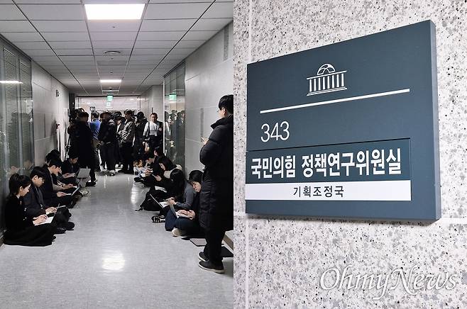 | ▲ [27일 수] 검찰이 압수수색을 예고한 서울 영등포구 국회 의원회관 내 국민의힘 기획조정국 앞에 취재진이 대기하고 있다. 창원지검은 이날 오전 국민의힘 당사 기획조직국을 압수수색하고 오후에는 국회의원회관 내 국민의힘 기획조정국도 압수수색했다. 이 압수수색은 2022년 재·보궐선거 공천 자료를 확보하기 위한 차원으로 알려졌다. |
