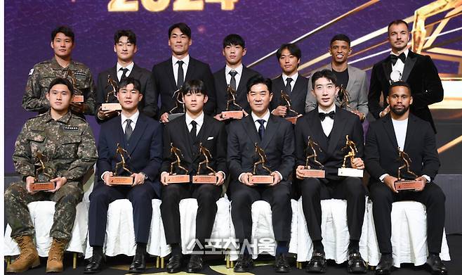 ●MVP=조현우(울산HD) ●감독상=윤정환(강원FC) ●영플레이어상=양민혁(강원FC) ●베스트11=조현우(GK) 이명재(울산HD) 박승욱(김천 상무) 김기희(울산HD) 황문기(강원FC·이상 DF) 안데르손(수원FC) 고승범(울산HD) 오베르단(포항 스틸러스) 양민혁(이상 MF) 이동경(김천 상무) 이상헌(강원FC·이상 FW) ●최다득점상=무고사(인천 유나이티드) ●최다도움상=안데르손 ●팬 프렌들리 클럽상=울산HD ●풀 스타디움상=FC서울 ●플러스 스타디움상=FC서울 ●사랑나눔상=대전하나시티즌 ●유소년 클럽상=울산HD ●페어플레이상=김천 상무 ●그린 위너스상=대전하나시티즌 ●아디다스 포인트 대상=안데르손 ●FC온라인 K리그 올해의 세리머니상=여홍규(제주 유나이티드) ●EA 스포츠 유저 선정 올해의 선수=조현우 ●공로상=박주영(울산HD) FC서울. kyi0486@sportsseoul.com