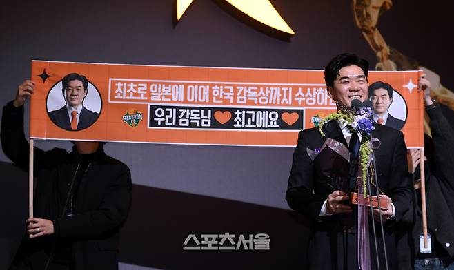 감독상은 준우승 팀 강원을 이끈 윤 감독이다. 지난시즌 강등권에 허덕이던 강원 소방수로 부임해 1부 잔류를 이끈 윤 감독은 올 시즌 공격 지향적 축구로 팀을 변모시키며 역사상 최고 성적인 준우승을 이끌었다. 이전까지 수비 색채가 강했던 강원은 리그 38경기에서 무려 62골을 기록, 우승을 차지한 울산HD(62골)와 최다 득점 공동 1위를 마크했다. 또 18세 영건 양민혁을 발굴하고 황문기 이기혁 이유현 등 주요 선수의 포지션 변화를 통해 호성적을 내는 등 내용면에서 유의미한 시즌을 보냈다. 열악한 환경을 지닌 시도민구단의 새 미래를 열었다는 평가를 받았다.