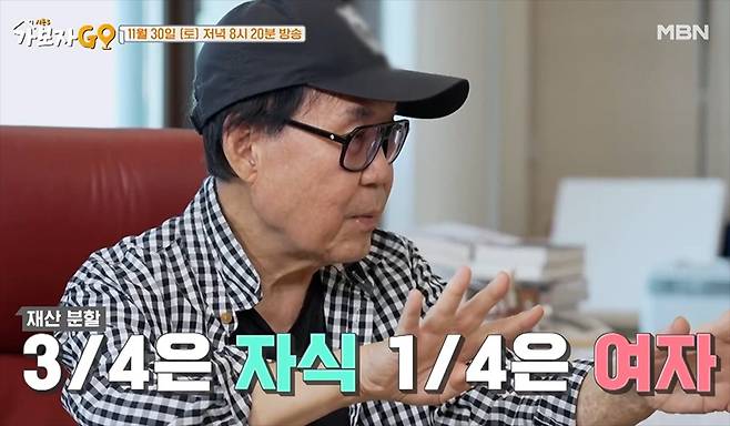 또한 홍현희는 유언장에 재산 관련된 내용도 있는지 물었다. 조영남은 "처음에는 '내 옆에 있는 여자에게 반을 주겠다'고 적었다. 좀 잘못됐다고 생각해 자식이 3명이기 때문에 자식과 옆 사람에게 각자 1/4씩 분배하라고 다시 적어 놨다"고 밝혔다. MBN '가보자GO'의 본방송은 매주 토요일 저녁 8시 20분에 방송된다.