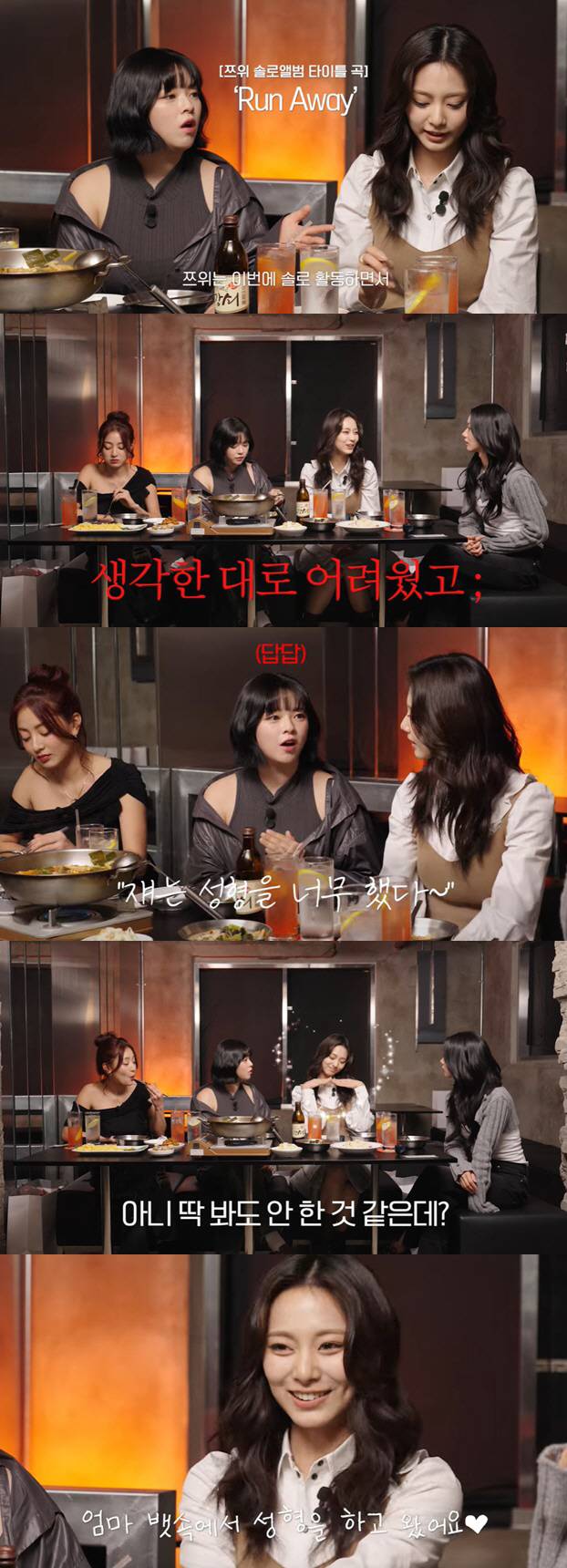 쯔위에 앞서 솔로 활동을 펼친 지효는 "저는 개인적으로 솔로 준비할 때, 너무 너무 힘들었다. 그래서 쯔위가 한다고 했을 때 너무 걱정됐다"고 전하기도 했다.