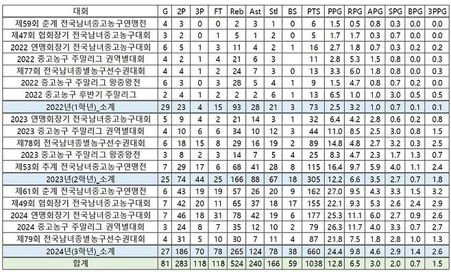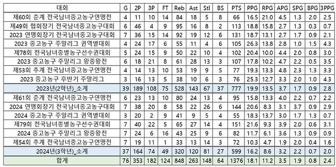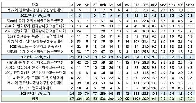 3학년이 되면서 욕심을 부려 오히려 무리한 플레이도 나왔다. 그래서 3학년 때 기록이 2학년 때보다 떨어진다. 2학년 때는 리바운드를 20개 이상 잡고 했는데 윤현성이 들어와서 리바운드가 분산되었다. 플레이를 간결하게 해야 하는데 이것저것 하려고 하니까 부하가 왔다. 자신이 잘 하는 걸 해야 하는데 남들이 하니까 자기도 하려고 했다. 물론 멀리 보면 해야 하지만, 지금 당장은 슛과 리바운드, 수비를 주문했다. 패스를 해주는 선수가 있는데 자기가 패스를 하려다가 실책이 많았다. 그래도 중학교와 비교하면 어마하게 발전했다.