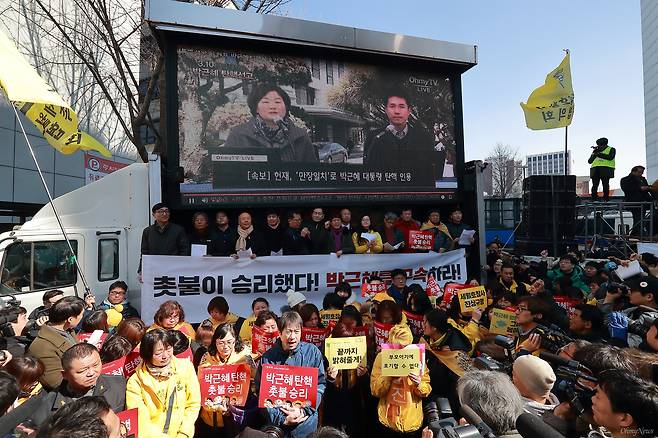 하지만 헌재의 탄핵 심판이라는 마지막 관문이 남아 있었다. 때로는 연차까지 써가며 광화문으로 갔다. 박근혜 대통령 탄핵 심판이 진행되던 날인 2017년 3월 10일에도 헌재재판소 앞에서 시민들과 함께 판결을 지켜봤다.